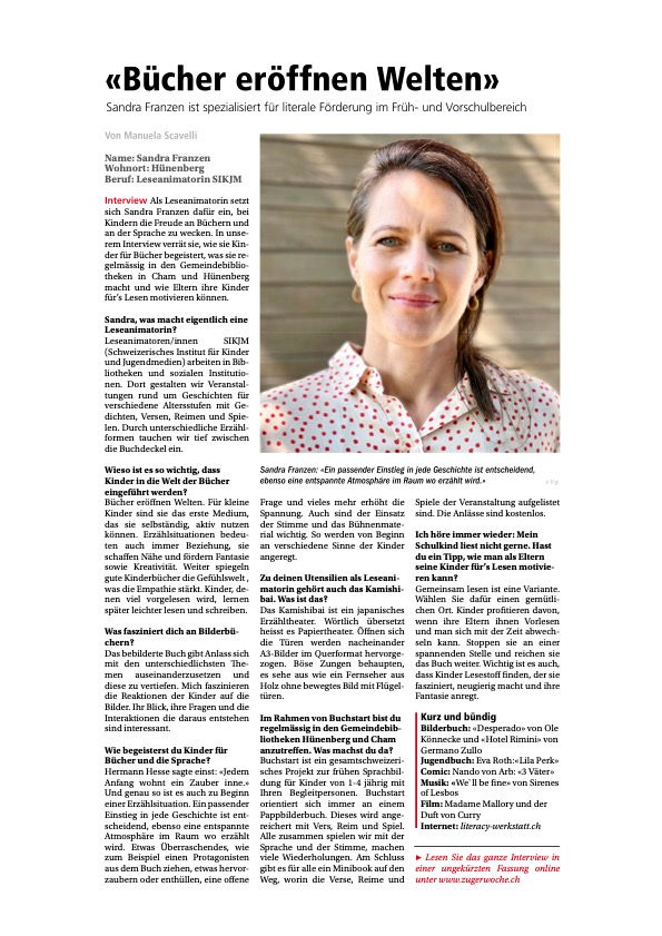 InterviewSandra Franzen ist spezialisiert für Literale Förderung im Früh- und VorschulbereichInti Sandra Franzen.pdfDownload PDF • 278KB